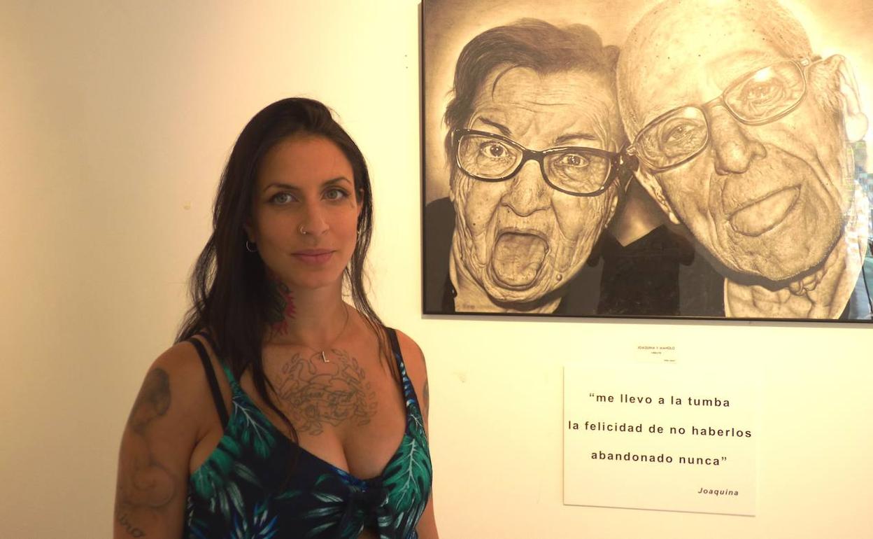 La artista pacense expone en el centro cultural La Gota una colección de retratos, la mayoría de personas mayores