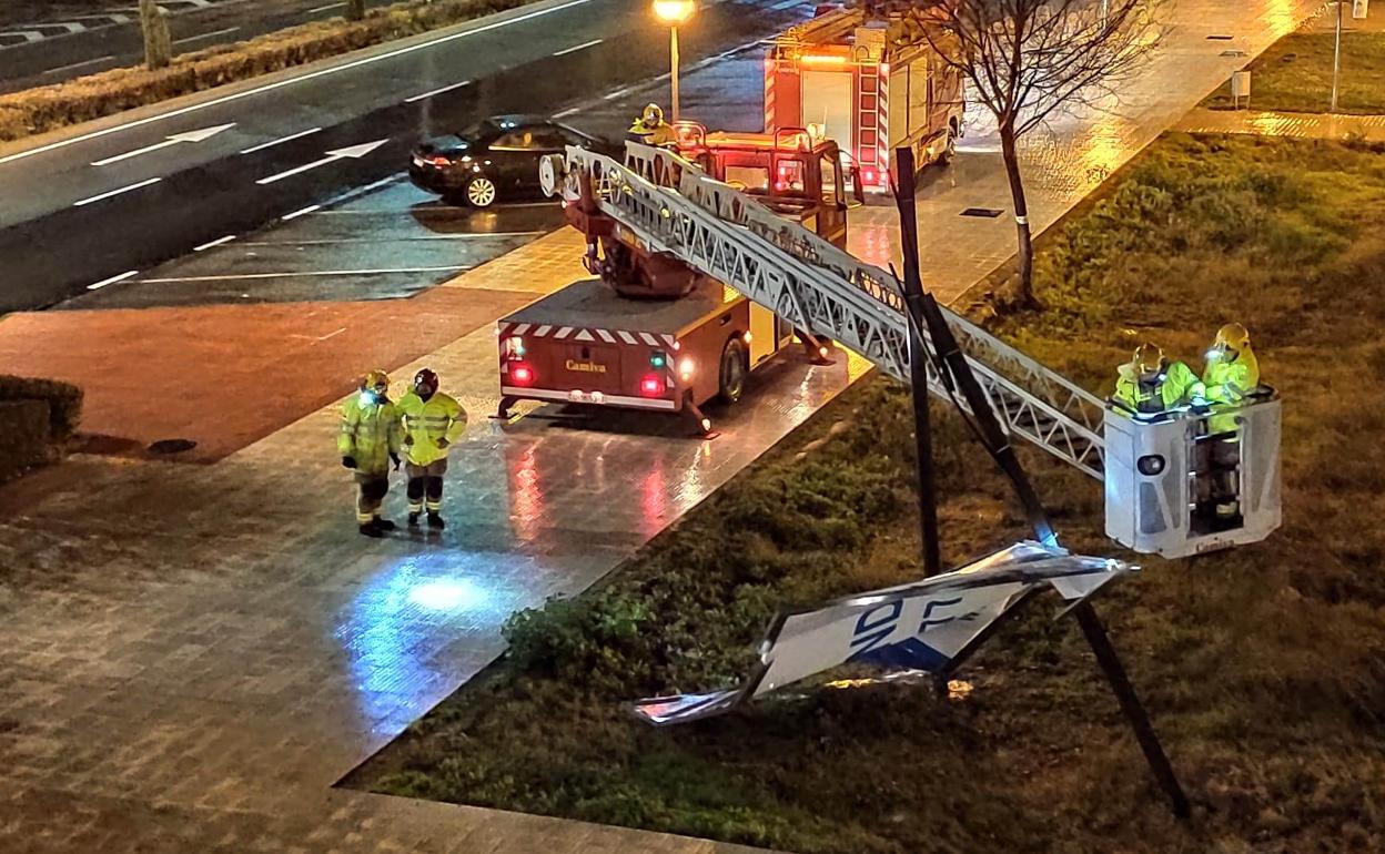 La abundante lluvia y el fuerte viento han empezado a causar problemas desde primera hora de la noche del jueves en distintos puntos del casco urbano de Navalmoral, al igual que ha ocurrido en otros pueblos y ciudades de la región. Como la caida de una valla publicitaria cerca de la carretera Nacional V o de varias ramas de las copas de las palmeras situadas junto al Palacio de Justicia. Al menos de las que tengamos conocimiento, porque es de suponer que habrá más incidencias.