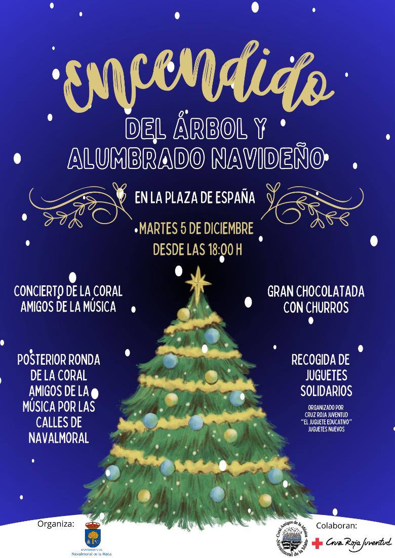 A las seis de la tarde del martes se procederá al encendido de la iluminación navideña que se viene instalando en los últimos días en las calles de Navalmoral, al igual que el árbol que se ha 'plantado' junto a la iglesia de San Andrés.