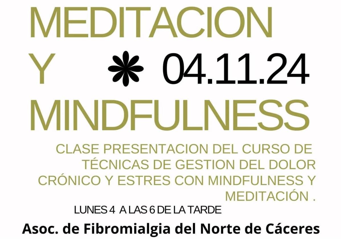 La Asociación de Fibromialgia del Norte de Cáceres celebrará desde las seis de la tarde de este lunes, en el centro sociocultural La Inmaculada, la clase presentación del curso de 'Técnicas de gestión del dolor crónico y estrés con mindfulness y meditación' que se va a impartir el colectivo.