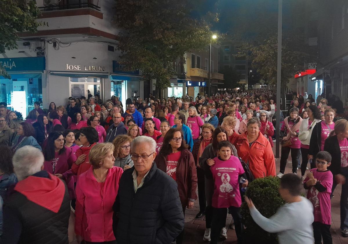 Cerca de un millar de personas de todas las edades respondieron al llamamiento de la concejalía de Sanidad y de las asociaciones oncológicas AECC y AOEX para participar en la X Marcha Rosa que se celebró en la noche del viernes, con inicio y final en el multiusos tras recorrer el centro urbano. Muchas de ellas asistieron después al concierto en tributo a Mecano que cerró las actividades de la semana contra el cáncer, precedido por la actuación de Sergio Cepeda.