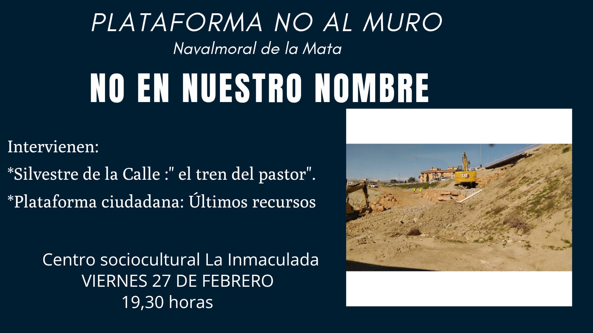 'No en nuestro nombre' es el título de la jornada que la plataforma No al Muro celebrará en la tarde del viernes en el centro sociocultural La Inmaculada, centrada en las obras del tren de altas prestaciones a su paso por el casco urbano.