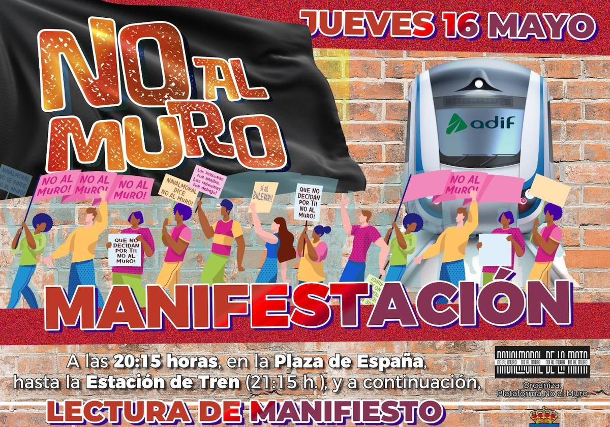 La plataforma ciudadana No al Muro celebrará el jueves 16 una nueva manifestación para pedir la paralización de las obras del tren de altas prestaciones ... en el casco urbano y la modificación del proyecto para que el paso de las vías sea soterrado.