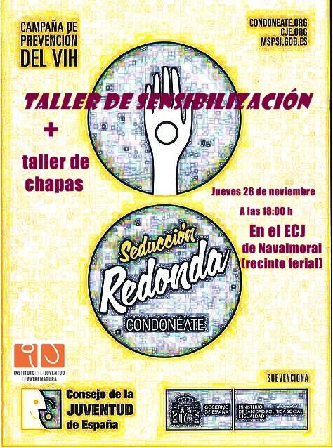 Bajo el lema Como prevención, usa condón, el Espacios para la Creación Joven de Navalmoral acogerá el jueves, a partir de las seis de la tarde, un taller de sensibilización y prevención del VIH y a continuación otro de creación de chapas con el lema de la campaña.