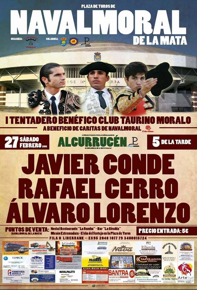 El Club Taurino Moralo invita a asistir a los aficionados de Navalmoral y la zona al tentadero que organizará en la tarde del sábado en el edificio multiusos a beneficio de Cáritas, con la presencia de Javier Conde, Rafael Cerro y Álvaro Lorenzo.