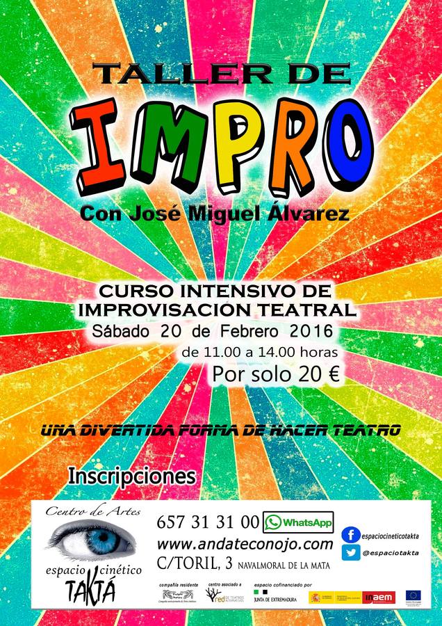 En la mañana del sábado, en horario de 11.00 h. a 14.00 h., el actor y director moralo José Miguel Álvarez -que actualmente reside en Uruguay- impartirá un taller intensivo de improvisación teatral, para un mínimo de 10 alumnos y un máximo de 25, que deben abonar 20 euros.