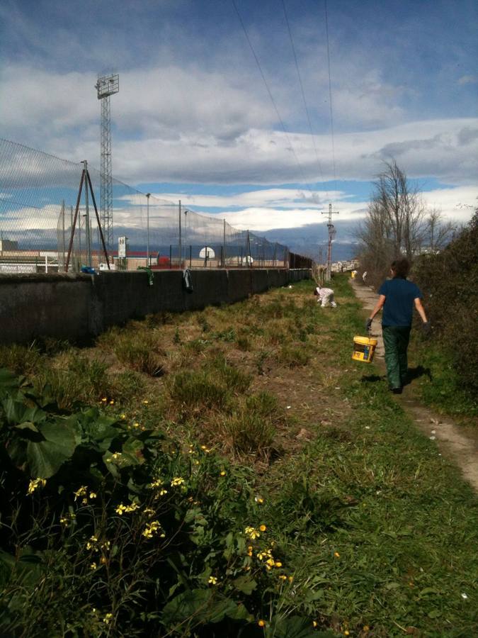 Las dos imágenes que ilustran esta información reflejan el antes y el después de la limpieza que un grupo de voluntarios y voluntarias realizaron en la mañana del domingo en las traseras del campo municipal de deportes por iniciativa de Ecologistas en Acción, erradicando, aunque sea temporalmente, un auténtico vertedero.
