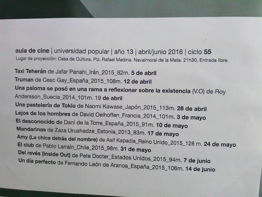 La actividad de mayo se abrirá el día 3 con Lejos de los hombres, a la que seguirán El desconocido, Mandarinas, Amy (la chica detrás del nombre) y El club, para terminar en junio con una excelente película de animación, Del revés, y uno de los trabajos más flojos de Fernando León de Aranoa a pesar de sus buenas intenciones, Un día perfecto.