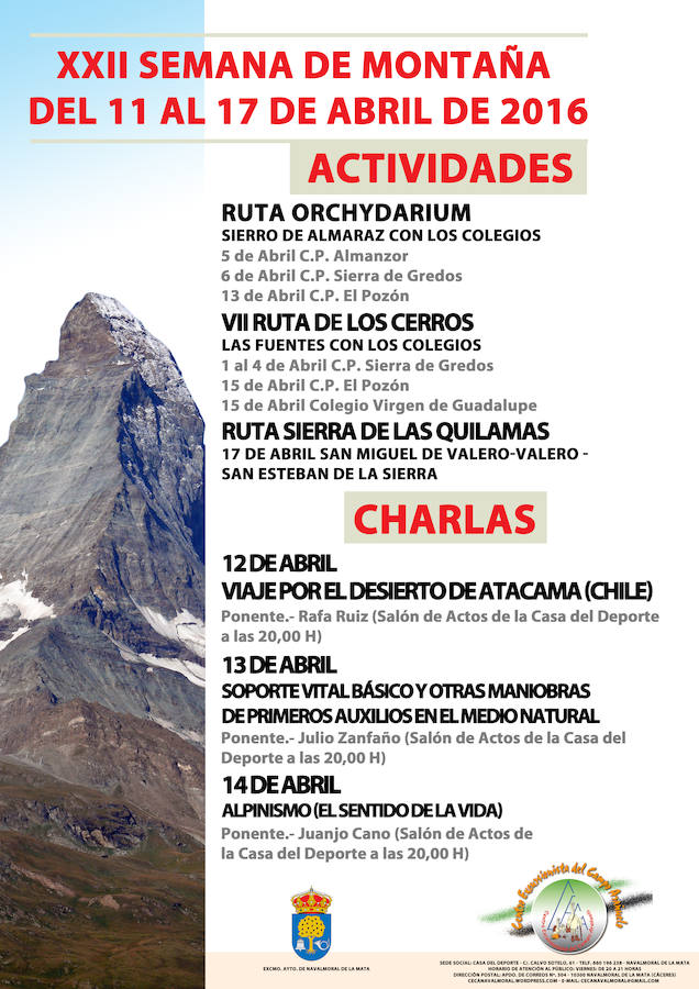Rafael Ruiz, profesor y conocido aficionado a la fotografía, abrirá en la tarde del martes las charlas que incluye la XXII Semana de Montaña que organiza hasta el domingo el Centro Excursionista del Campo Arañuelo. Será a las ocho, en la casa del deporte, narrando un viaje por el desierto de Atacama.
