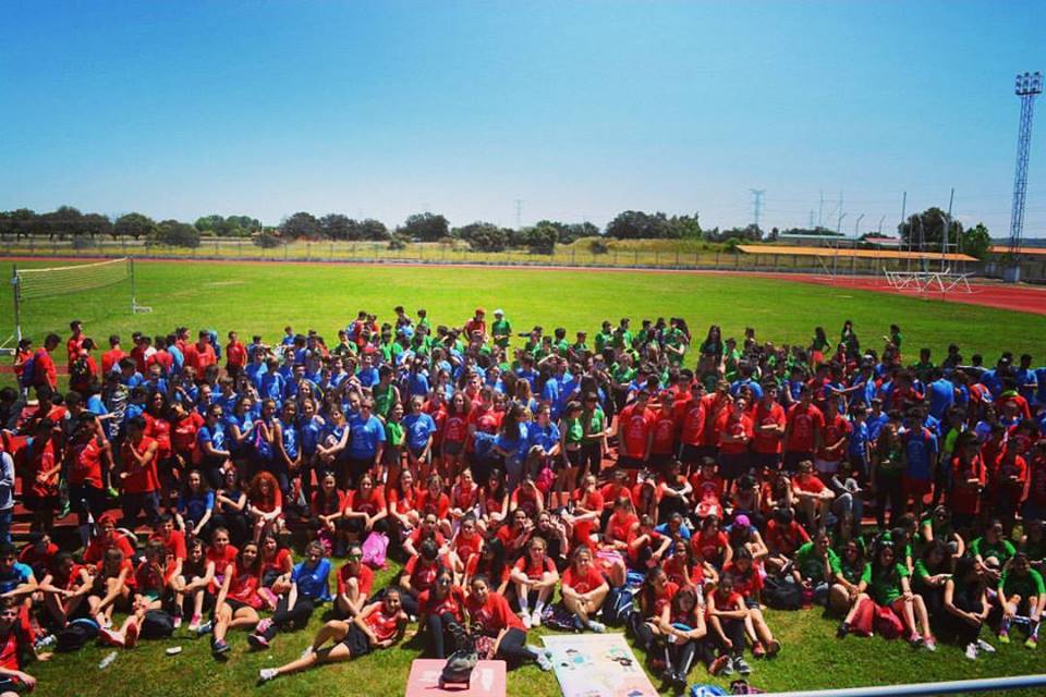 Esta llamativa imagen dejaron los más de 400 jóvenes que protagonizaron el viernes las VI Olimpiadas Juveniles, organizadas por los institutos Albalat, Augustóbriga y Zurbarán con la colaboración del Ayuntamiento. Su objetivo es fomentar la práctica del deporte, pero también la convivencia entre alumnos de distintos centros