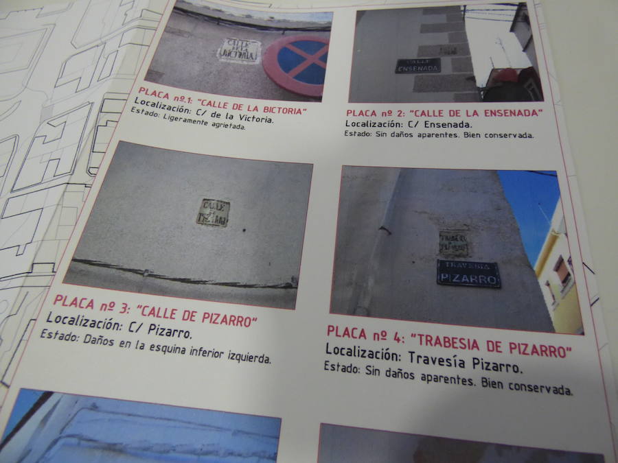«Cuando nos juntamos por temas de la Fundación es miembro del consejo asesor hablamos de cosas de estas. Carlos estaba haciendo ese trabajo y yo otro sobre la planimetría de Navalmoral y cómo ha ido evolucionando la traza urbana y buscando nos empezamos a interesar. Estos letreros se corresponden con el callejero que se conservaba en esos planos. Se hicieron unos 160 y solo quedan 10. La mayoría están concentrados en el entorno de la plaza Vieja y la Peligrosa, quitando San Pedro y Gravina. Y había uno en Hernán Cortés con un número 2, que se nos ha escapado», explica.