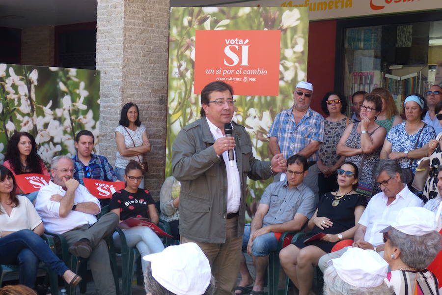La plaza de Comillas fue escenario del segundo acto de campaña electoral en Navalmoral, protagonizado por el PSOE, que desafió al día, un domingo; a la hora, las doce el mediodía, y a las temperaturas, muy altas. En el acto intervinieron la alcaldesa, Raquel Medina; Pedro Pascua, candidato al Senado; Rosario Cordero, presidenta de la Diputación Provincial; César Luena, secretario de Organización federal del PSOE, y Guillermo Fernández Vara, secretario regional de los socialistas y presidente de la Junta de Extremadura.