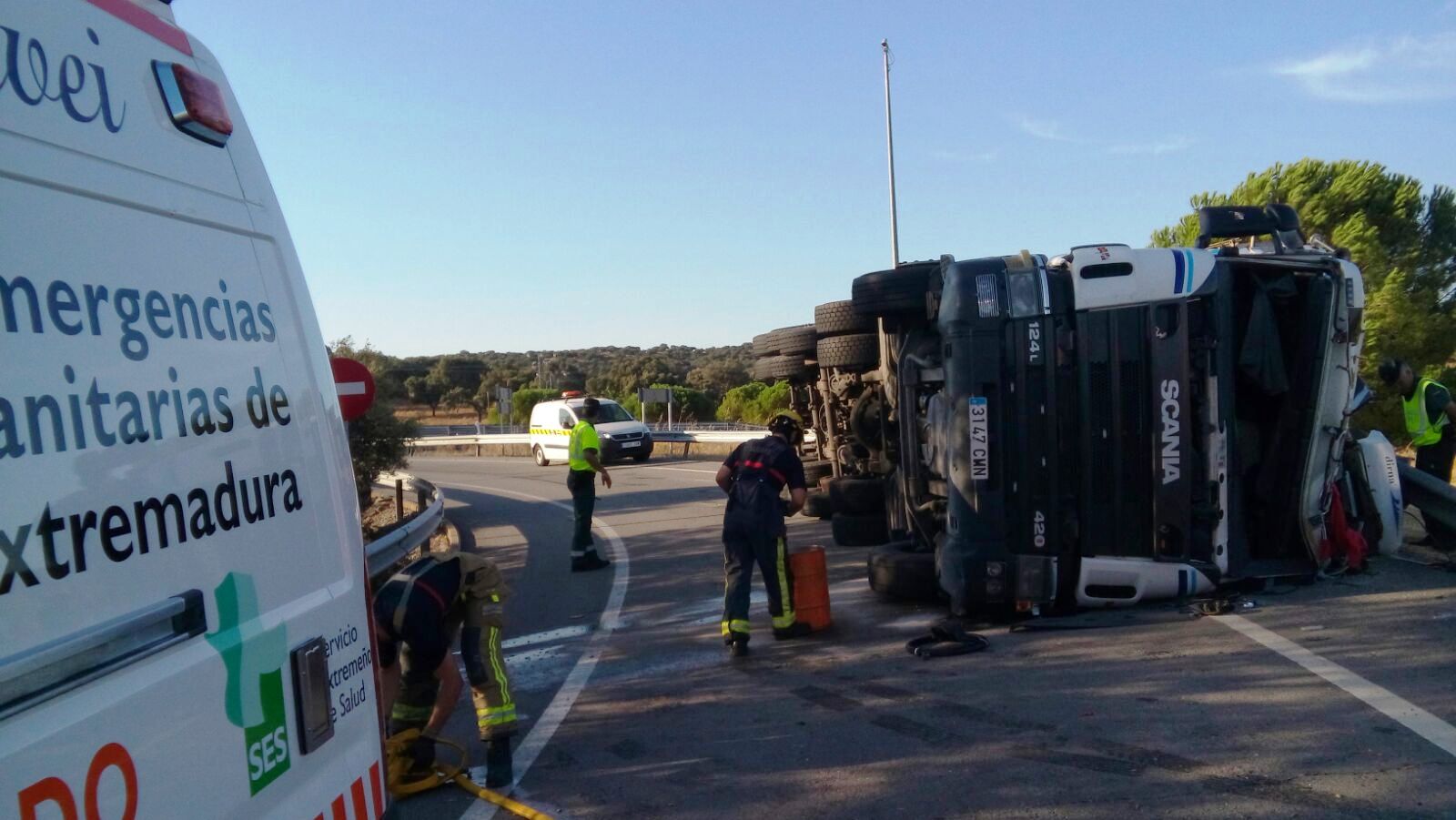 Un hombre de 32 años ha resultado herido tras el vuelco de un camión en la autovía de Extremadura, en las inmediaciones de Navalmoral, a la altura del kilómetro 183 sentido Lisboa.