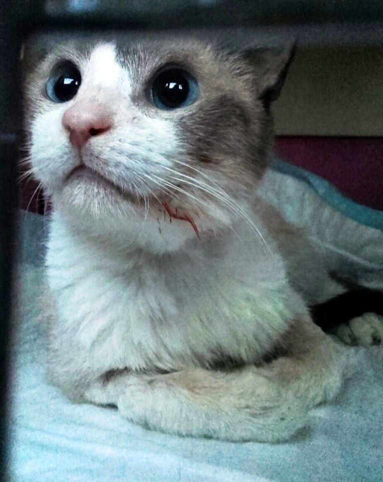Aunque sus males parece que vienen de antes de incendio, puesto que mostraba claros síntomas de abandono. Seguramente fue un gato de familia hasta que comenzó a maullar demasiado o a hacerse demasiado grande, dicen desde Cristicats.