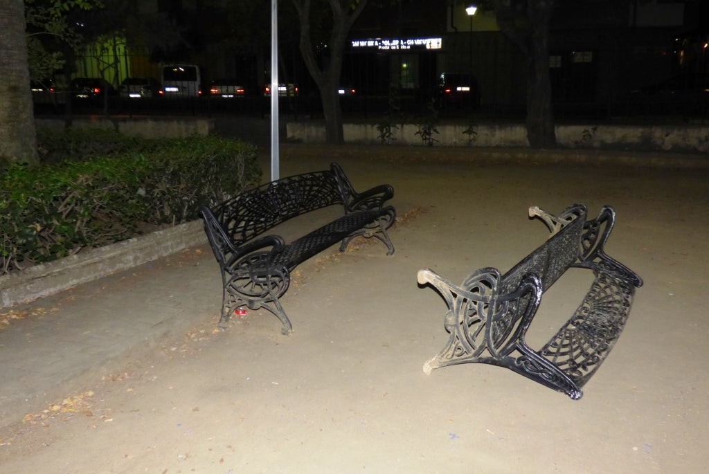 Esta fotografía se ha tomado en el fin de semana en el parque municipal. Un banco arrancado de cuajo, que parece lleva bastante tiempo fuera de su sitio, colocado frente a otro que todavía está en pie. Es un ejemplo más del vandalismo y la falta de educación que impera en la sociedad. Porque se trata de mobiliario urbano que pagamos entre todos y que hace un servicio a las personas que se sientan en el parque, en especial mayores o madres con niños.