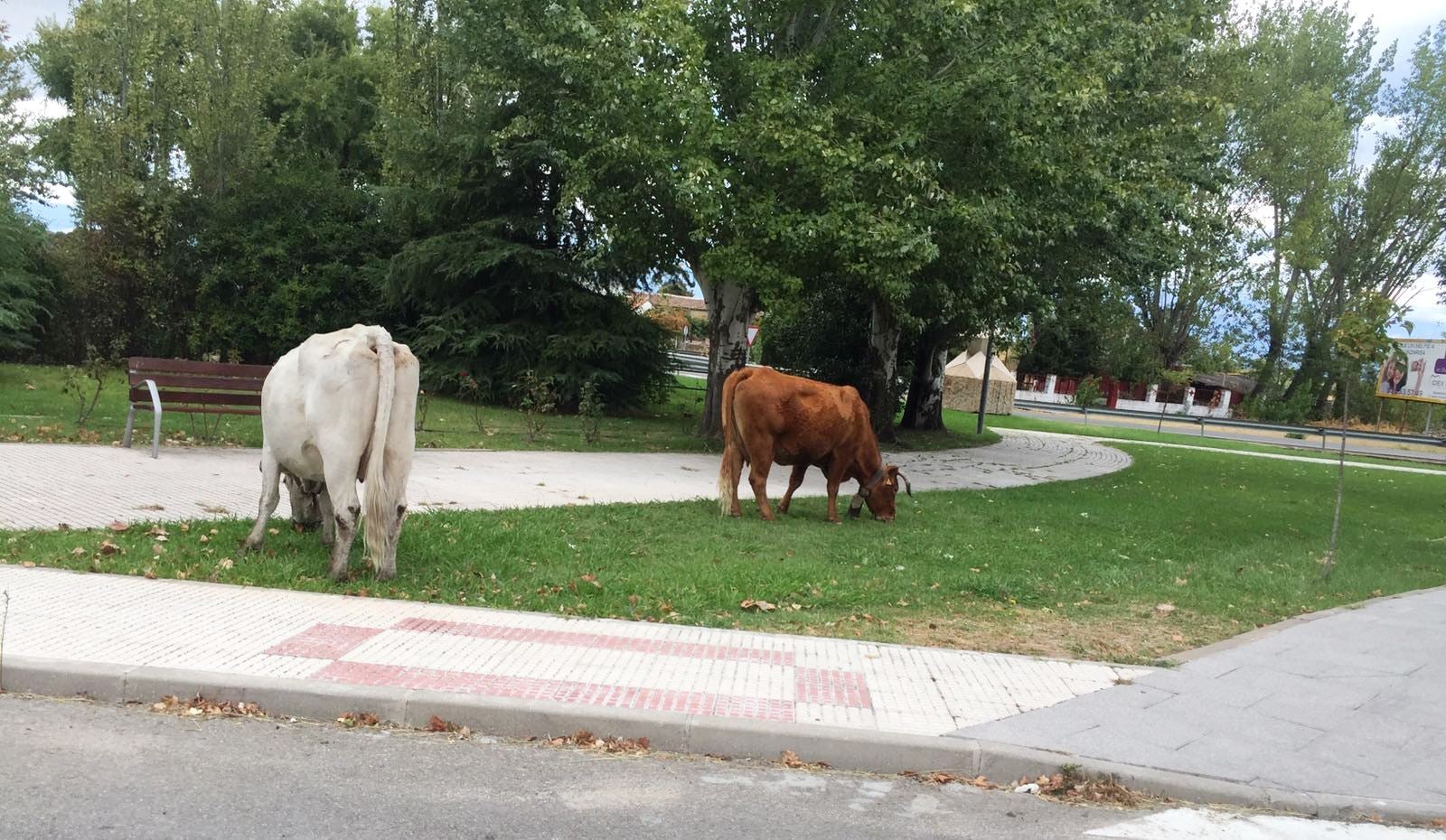 Vacas pastando en la subida al hospital