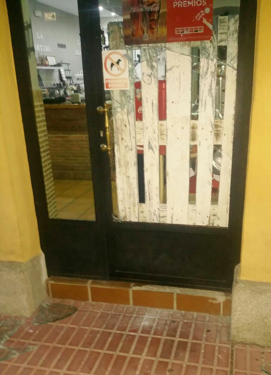Así han quedado el interior y una de las puertas de acceso a la Cantina de Renfe, que en la madrugada del lunes al martes ha sido víctima de un nuevo robo de los que se vienen cometiendo en los últimos días. Ocurrió sobre la una, según el testimonio de vecinos de la zona que escucharon primero un fuerte golpe y después la rotura de los cristales de la puerta que da a las vías del tren. De inmediato llamaron a la Guardia Civil y la Policía Local, si bien cuando llegaron los agentes el autor del robo –aseguran que solo vieron a una persona- ya se había dado a la fuga llevándose la caja registradora y la recaudación de una máquina tragaperras, que destrozó, además de revolver todo el establecimiento.