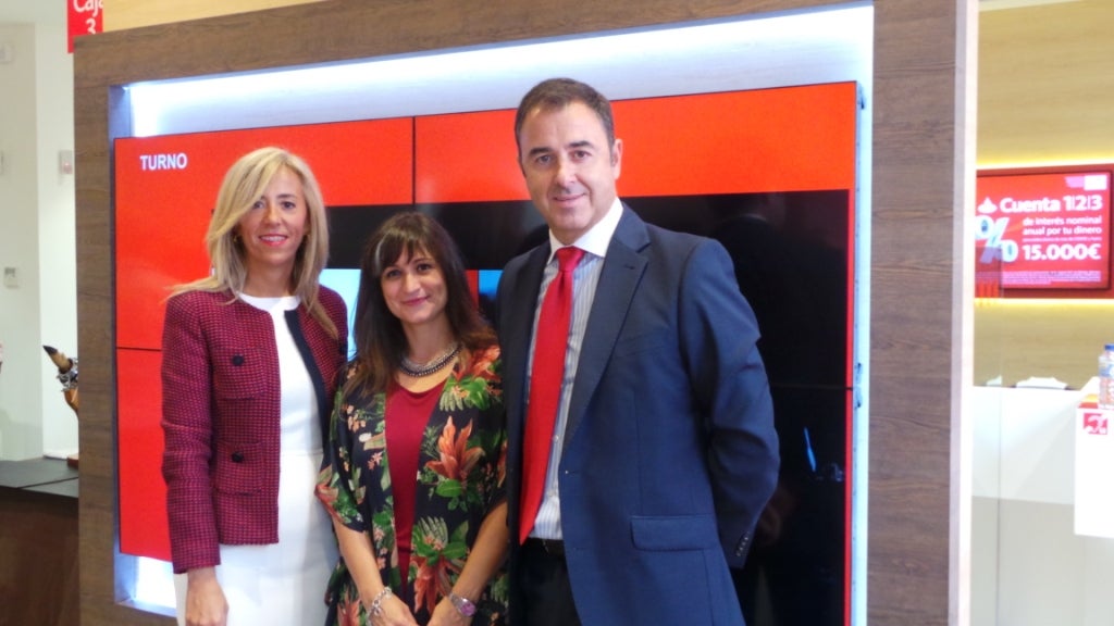 El banco inauguró el jueves en Navalmoral, en un evento que reunió a autoridades, representantes de instituciones públicas y privadas y clientes, la primera oficina de este tipo que funcionará en Extremadura. Entre ellas a la alcaldesa, Raquel Medina, y a la directora de la oficina, Elvira Cáceres.