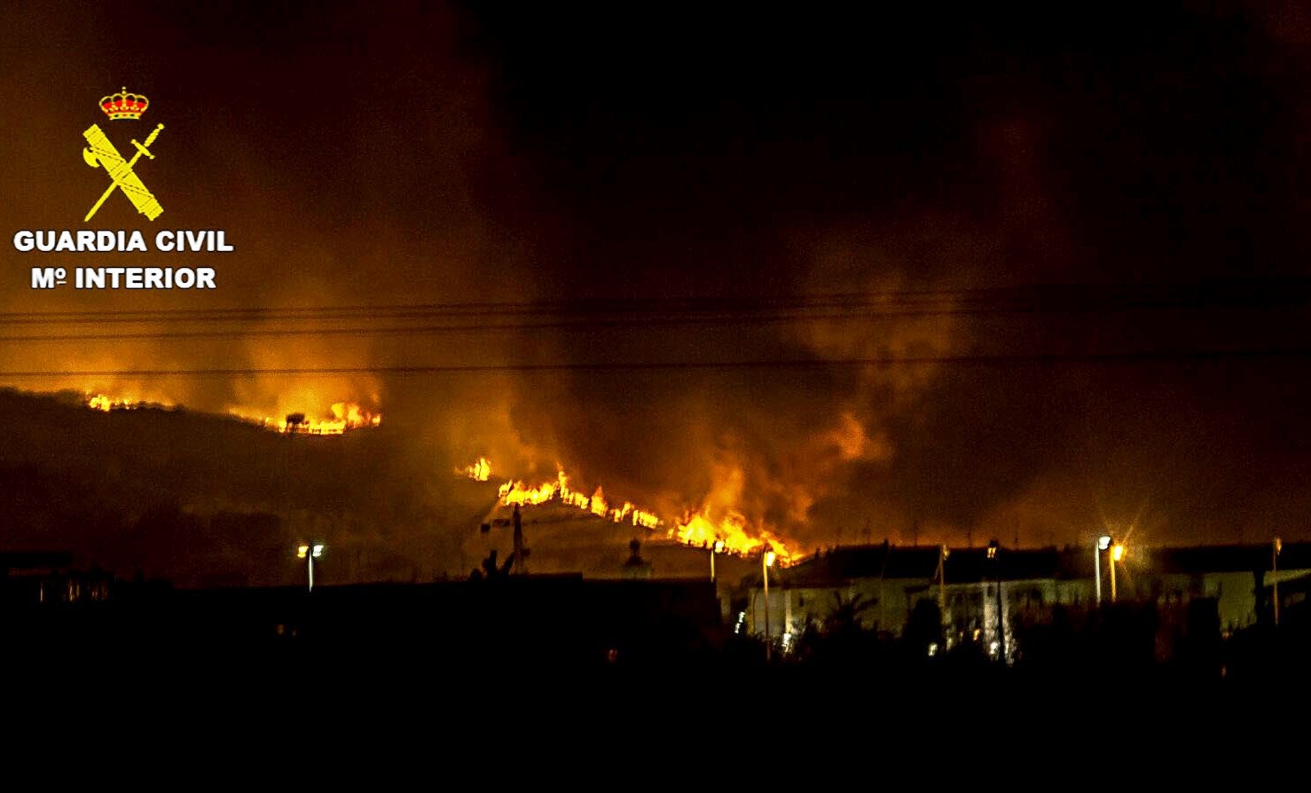 Según explica la propia Guardia Civil, a las 01:50 horas del pasado 18 de agosto recibió aviso de la existencia de un conato de incendio en una zona de monte bajo y matorral próxima al hospital. Una vez en el lugar, los agentes comprobaron que el incendio era más grande y peligroso de lo que parecía al principio, al existir dos conatos bastante diferenciados, en una zona de pendiente pronunciada, alimentados por un fuerte viento, lo que ocasionó que quedará totalmente descontrolado.