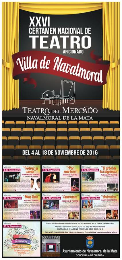 Las representaciones tendrán lugar los días 4, 5, 6, 11, 12 y 13 de noviembre, dejando para el 18 la clausura y entrega de premios