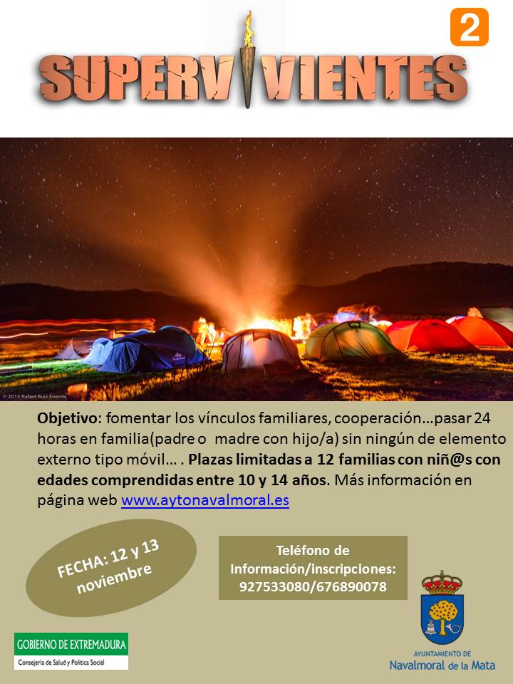 Un máximo de 24 participantes, divididos en 12 equipos formados por un niño o una niña de entre 10 y 14 años y un adulto, tomarán parte en la segunda edición del concurso Supervivientes, la iniciativa que ganó la VII Convocatoria de Proyectos de Educación para la Salud. Se llevará a cabo entre el jueves y el domingo de la próxima semana con el objetivo de combatir la adicción a las nuevas tecnologías, concienciar medioambientalmente y fomentar la cooperación.