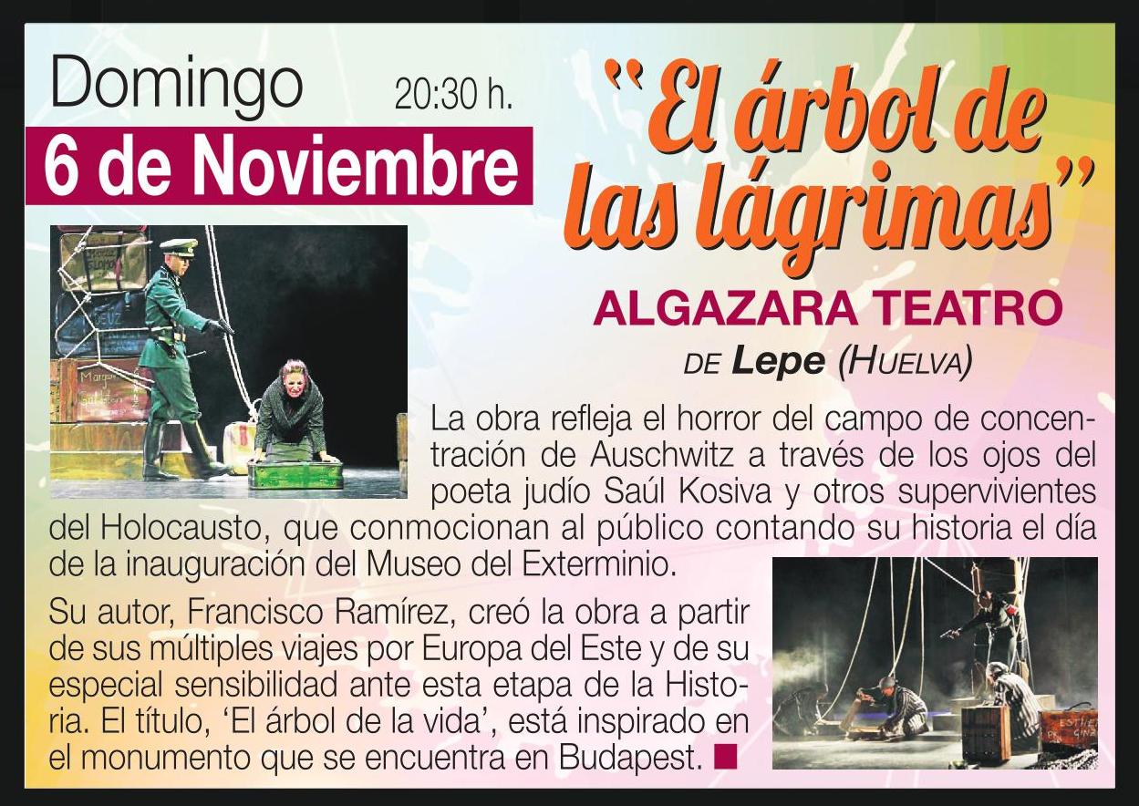 La compañía onubense Algazara cerrará en la noche del domingo el primer fin de semana de representaciones del XXVI Certamen de Teatro Aficionado 'Villa de Navalmoral', que se inició el viernes en el Teatro del Mercado. Será a partir de las 20.30 h. con 'El árbol de las lágrimas', una obra que refleja el horror del campo de concentración de Auschwitz a través de los ojos del poeta judío Saúl Kosiva y otros supervivientes del Holocausto.