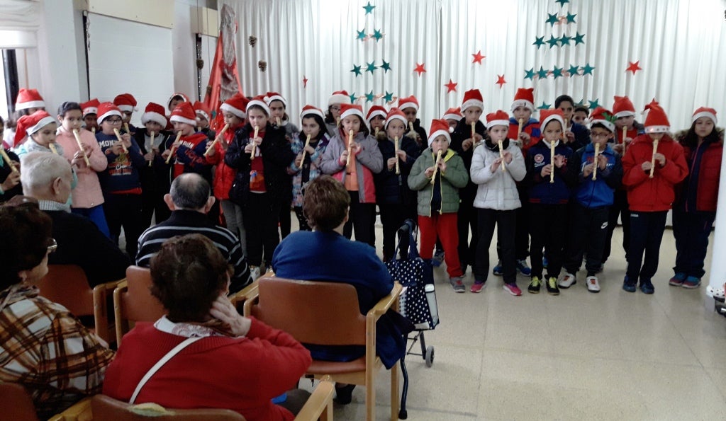 Alumnos de El Pozón llevan villancicos y alegría a los mayores de las residencias