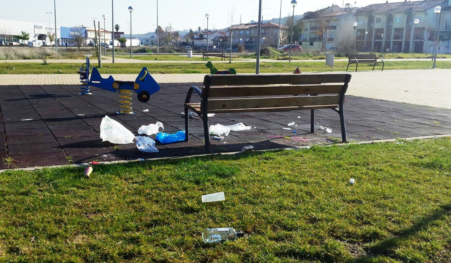 Vecinos de las viviendas que rodean las urbanizaciones de las eras del Cerro nos han remitido estas y otras fotografías similares a modo de denuncia para recriminar, por un lado, a quien deja allí basura y resto de 'botellones' con frecuencia y por otro para pedir más vigilancia y más iluminación, puesto que la falta de luz propicia este tipo de situaciones. Y que se limpie, claro.