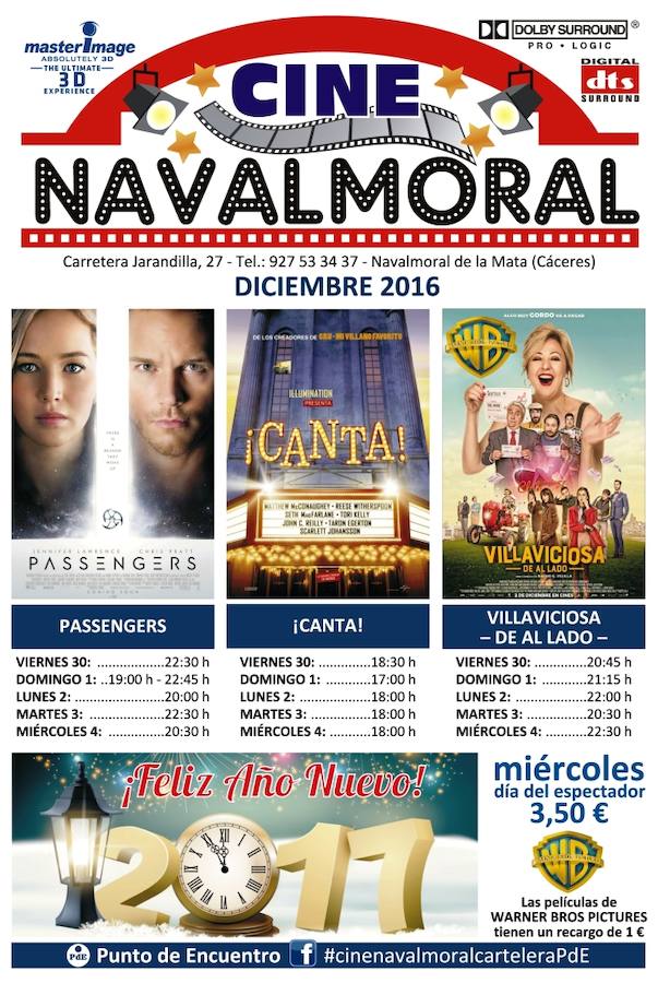 Cine Navalmoral abrirá el año con una cita para los amantes de la ciencia ficción, 'Passengers'; el humor, 'Villaviciosa de al lado', y la música y la animación, '¡Canta!'. Atentos a los horarios.