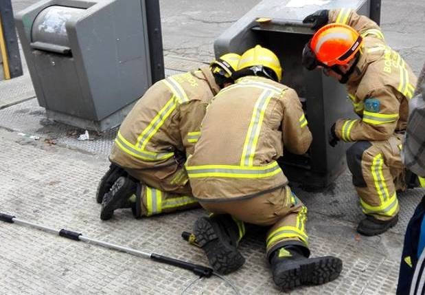 Los bomberos rescatan a siete cachorros arrojados a un contenedor de basura