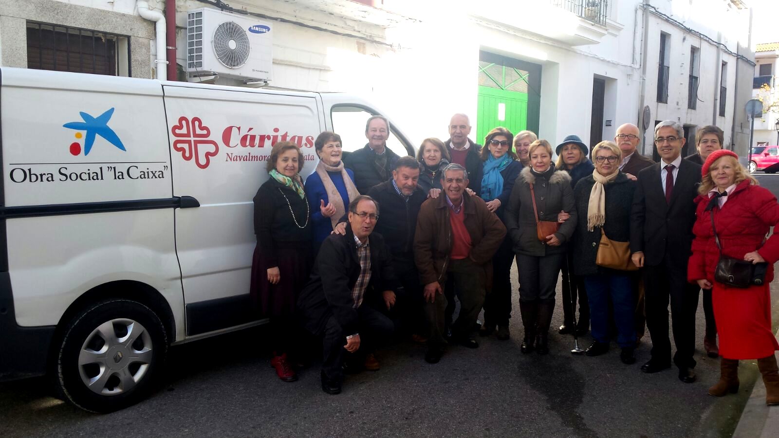 Al acto de presentación del vehículo, realizado días atrás, asistieron el presidente de Cáritas y un gran número de voluntarios, así como el director de la oficina local de Caixabank, Rafael Espinosa.