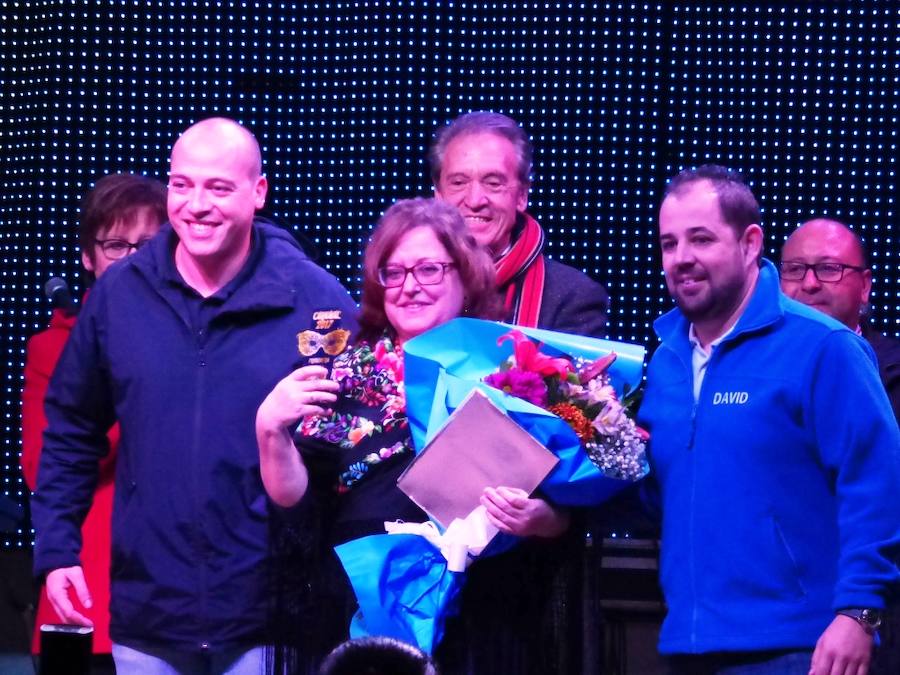 Buenas noches y felicidades. A todos vosotros Reinas y Damas, Comisión de Festejos, Asociación y componentes de Peñas y Comparsas, Asociaciones de barrio, agrupaciones que ... van por libre, grupos de amigos y familiares, y espectadores curiosos, felicidades. Felicidades porque todos y cada uno de vosotros sois los que hacéis el Carnaval; y vuestro empeño, esfuerzo y tesón los que nos van a permitir vivir seis maravillosos días de fiesta. Estáis, estamos a punto de recoger los frutos de ese trabajo. Enhorabuena.