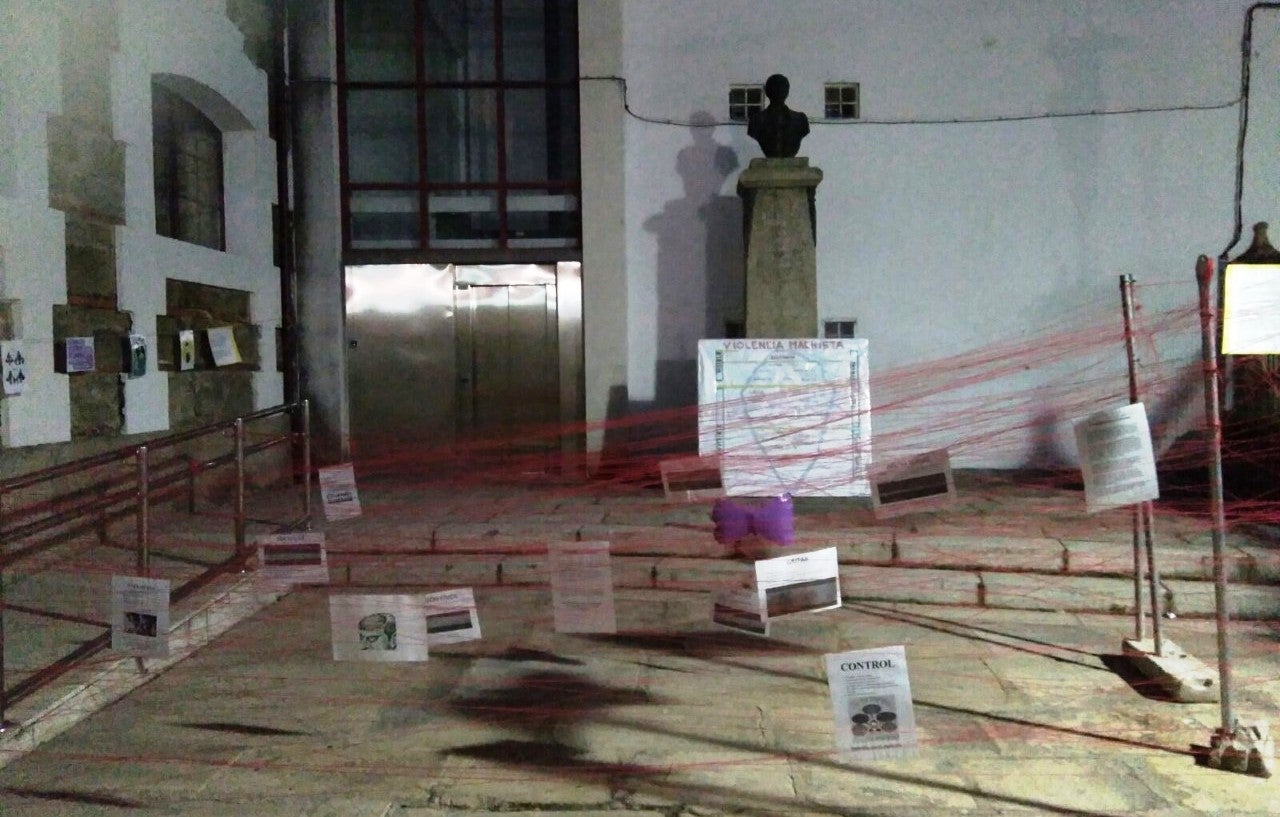 Todo esto se simboliza mediante una maraña de hilo rojo que representa la sociedad machista y, sobre todo y especialmente, la "relación tóxica y violenta basada en los malos tratos, en la cual yace una mariposa que no es capaz de salir de ese círculo del maltrato. Pero al final del recorrido hay otra mariposa que sí consiguió salir de la relación violenta y a su lado la carta de una mujer que fue víctima de violencia pero consiguió salir y dejar atrás esa vida".