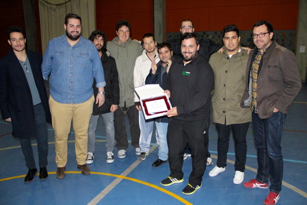 Por ese motivo, un grupo de amigos y compañeros de baloncesto aprovecharon la ocasión para entregársela, al ajercer como segundo entrenador del equipo. Algo más de 200 espectadores le arroparon con sus aplausos, puesto que el ambiente en el pabellón fue muy bueno.