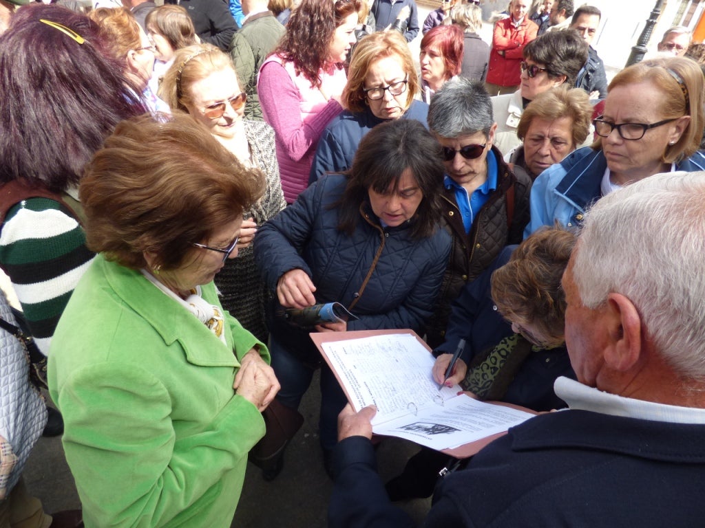 Cerca de un centenar de vecinos se han concentrado al mediodía del martes en la plaza de España para mostrar su rechazo al impuesto de sucesiones y donaciones en Extremadura y pedir que se suprima. Después han estampado su rúbrica en los impresos en los que se vienen recogiendo firmas en el último mes por iniciativa de una joven vecina, Rocío Sánchez Rodríguez. Ya se han superado las 22.000, lo que demuestra la indignación que existe en la ciudadanía hacia este impuesto, que se considera una discriminación en relación con otras regiones y una absoluta injusticia.
