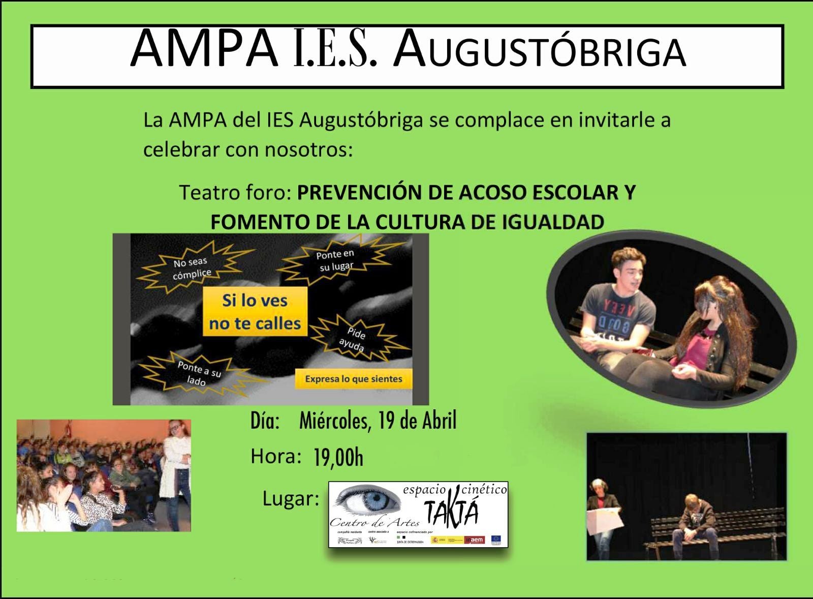 Se trata de una iniciativa para la prevención del acoso escolar y el fomento de la cultura de igualdad llevada a cabo por Oliver Ramos y Manuela Gutiérrez, integrantes de la compañía Paspie Danza, en colaboración con la asociación de madres y padres de alumnos del instituto moralo.