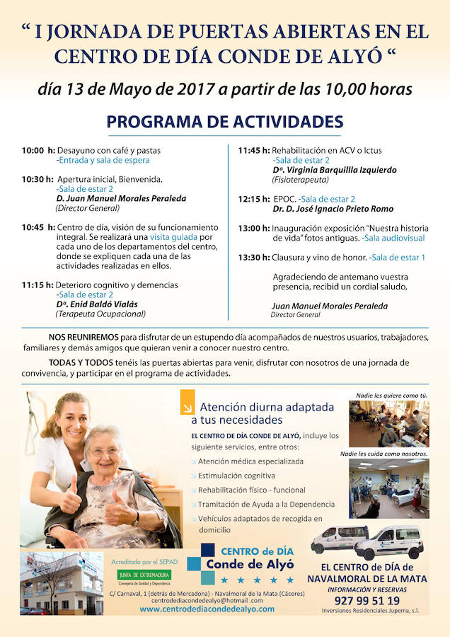 El centro de día Conde de Alyó celebrará el sábado su primera Jornada de Puertas Abiertas, con el objetivo de dar a conocer al conjunto ... de la población las infraestructuras de las que dispone, los servicios que presta y el equipo de profesionales que lo atiende.
