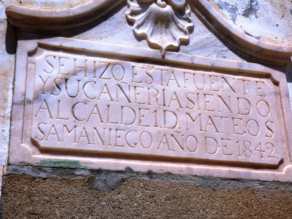 Trabajadores municipales han 'modernizado' en las últimas semanas la fuente de la plaza de Rafael Medina, que, como puede apreciarse en la inscripción que figura en la misma, data de 1842. Lo han hecho la cuadrilla de obras y el fontanero municipal siguiendo un minucioso proceso hasta extraer la pieza donde se encuentran los grifos para instalar tuberías y nuevos grifos, además de subir el fondo de la pila para evitar posibles caídas de los más pequeños.