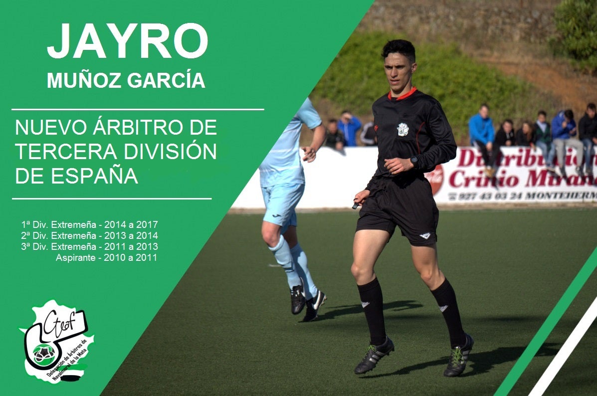 El joven colegiado moralo Jayro Muñoz García, de solo 19 años, es ya árbitro de Tercera División, según ha dado a conocer el Comité Territorial ... Extremeño de Árbitros de Fútbol. Ha ocupado la primera posición de los 60 árbitros que forman la Primera División Extremeña con una puntuación de 252,50, por delante de los también ascendidos Daniel Miranda Bolaños, de Mérida; Alejandro López Circujano, de Badajoz, y Antonio Cordón Valladares, de Burguillos del Cerro.