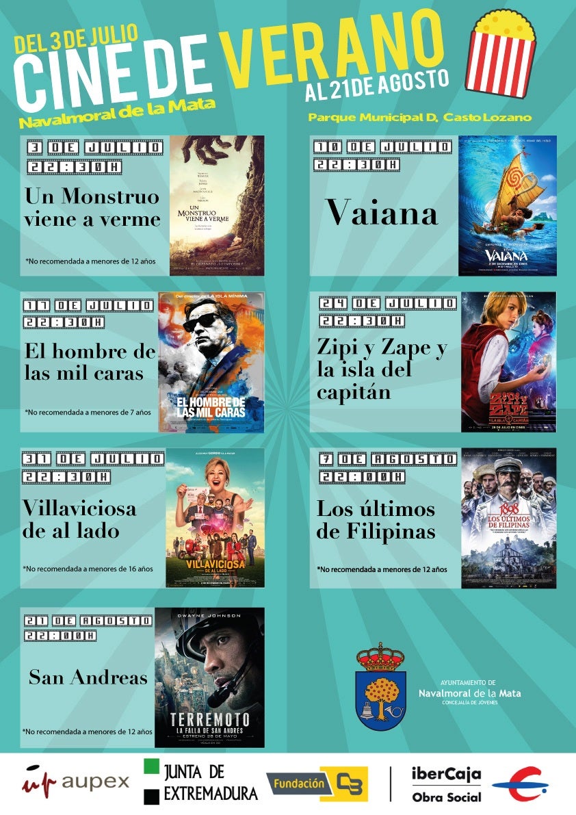 El cambio en el día de proyección, del martes al lunes, se debe a que las películas de julio están subvencionadas por el Programa de Cine de Verano que desarrolla la Asociación de Universidades Populares de Extremadura, en colaboración con la Junta y la Fundación CB-Ibercaja Obra Social.