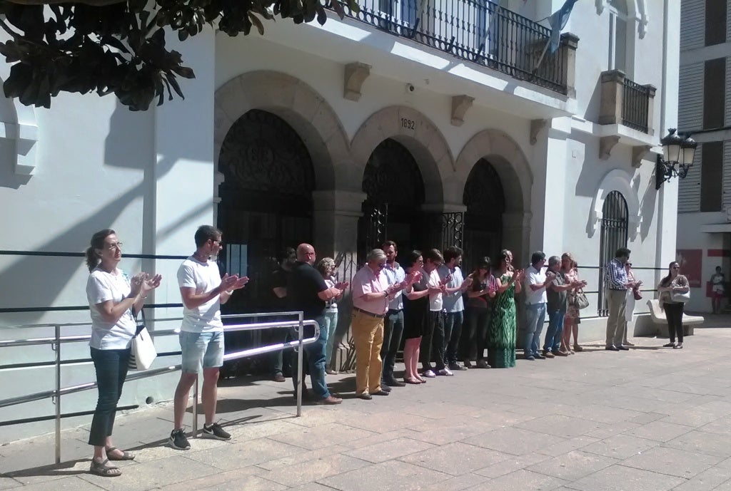 Poco más de 40 personas se han concentrado a mediodía en la plaza de España para rechazar el asesinato de Miguel Ángel Blanco, ocurrido hace 20 años a manos de ETA, y mostrar su apoyo a todas las víctimas del terrorismo. La mayoría eran miembros de la Corporación, representantes de distintos partidos y trabajadores municipales.