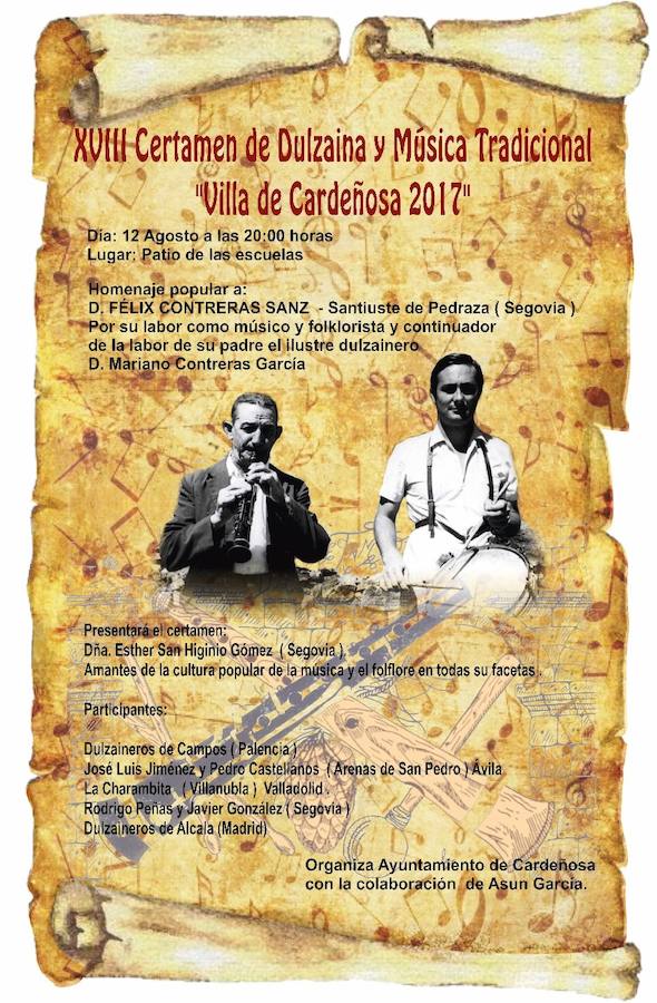 De ahí el homenaje que han decidido tributarle los organizadores del XVIII Certamen de Dulzaina y Música Tradicional 'Villa de Cardeñosa 2017', que se celebrará el sábado 12 en el patio de las escuelas, "por su labor como músico y folklorista y continuador de la labor de su padre, el ilustre dulzainero Mariano Contreras".