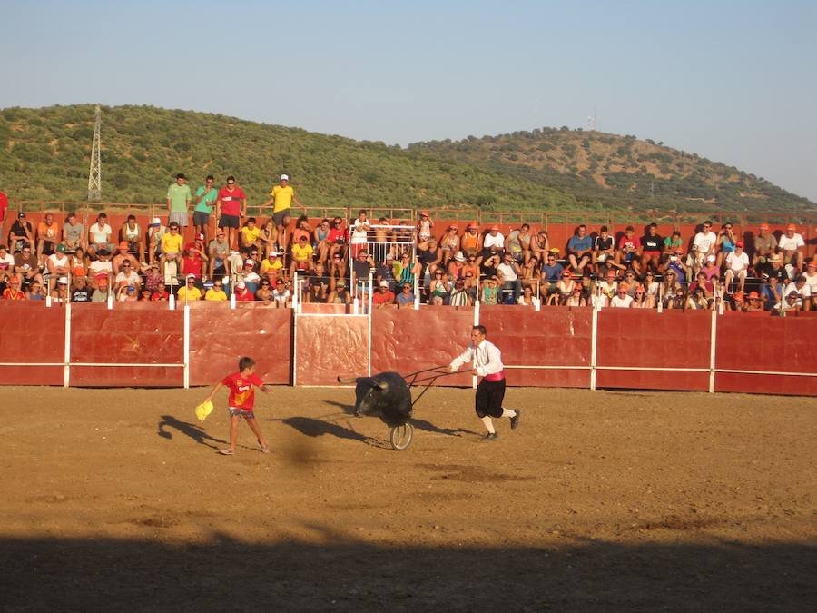 A las siete de la tarde la actividad se trasladará a la plaza de toros, donde se celebrará una exhibición de recortadores y la lidia de una vaquilla al estilo tradicional. La jornada concluirá con un concurso de disfraces en la plaza y una nueva actuación musical.