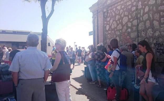 «Ya pintaba mal, de hecho hemos salido de Madrid con otro convoy vacío enganchado detrás». Explica también que el revisor les ha dicho que el parón es debido a un problema en el aire acondicionado. «Hace muchísimo calor y no estaría mal un poco de agua. Esto es una vergüenza» asevera Jesús, mientras se resguarda a la sombra y habla por teléfono con HOY.es.