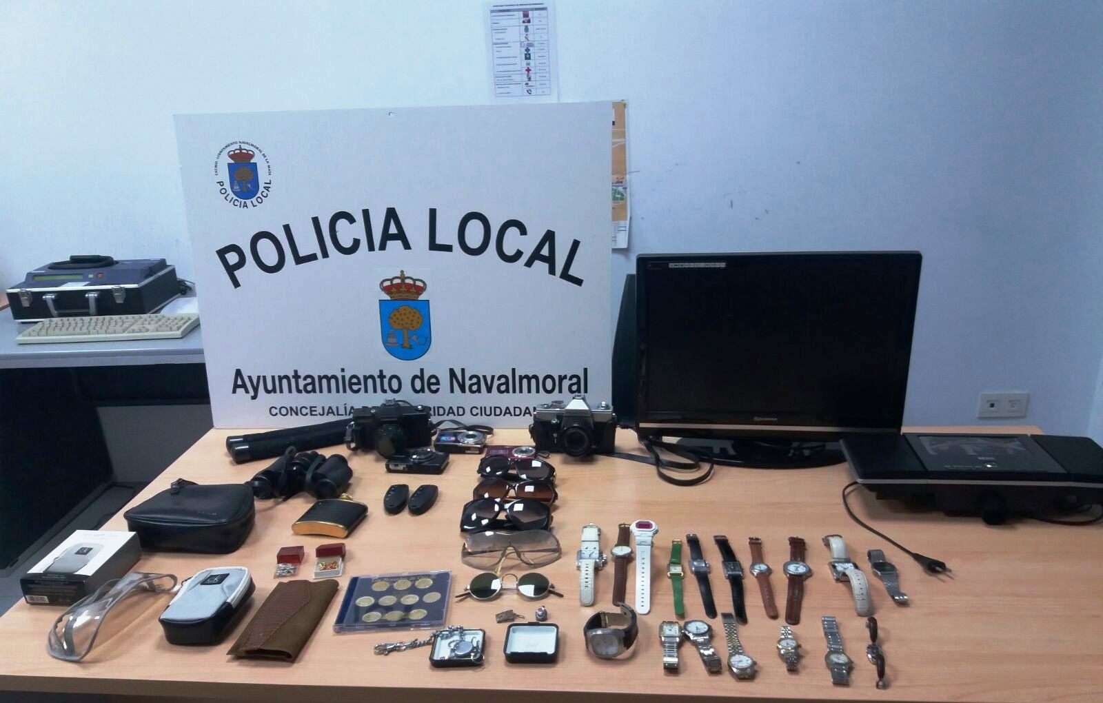 Dos horas después, a las 13,00 h., se recibió la llamada de otro vecino comunicando que en el patio de la Fundación Concha había tres maletas. Al abrirlas, los agentes encontraron un televisor, un equipo de música, cinco cámaras fotográficas, cinco gafas de sol, 18 relojes, monedas de oro y otros objetos de plata. Tras realizar las averiguaciones pertinentes se comprobó que pertenecían al domicilio ya citado.
