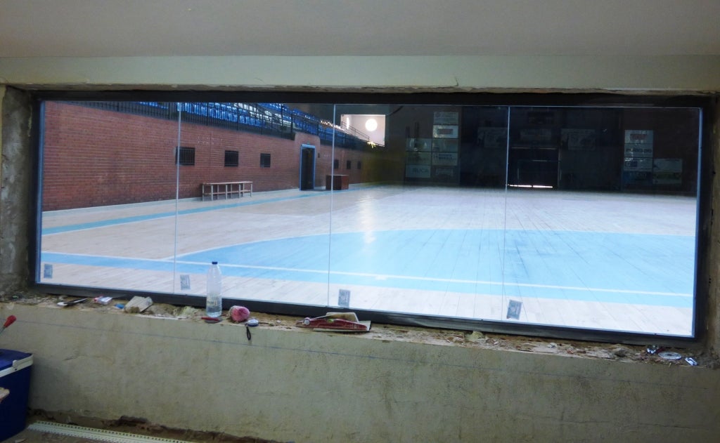 La incorporación de unas llamativas cristaleras en la zona del bar, para permitir una mejor visualización de la pista, va a ser la actuación más novedosa de las que se vienen realizando en el pabellón del barrio del Molinillo para mejorar su accesibilidad. A las obras en marcha le quedan alrededor de un mes.