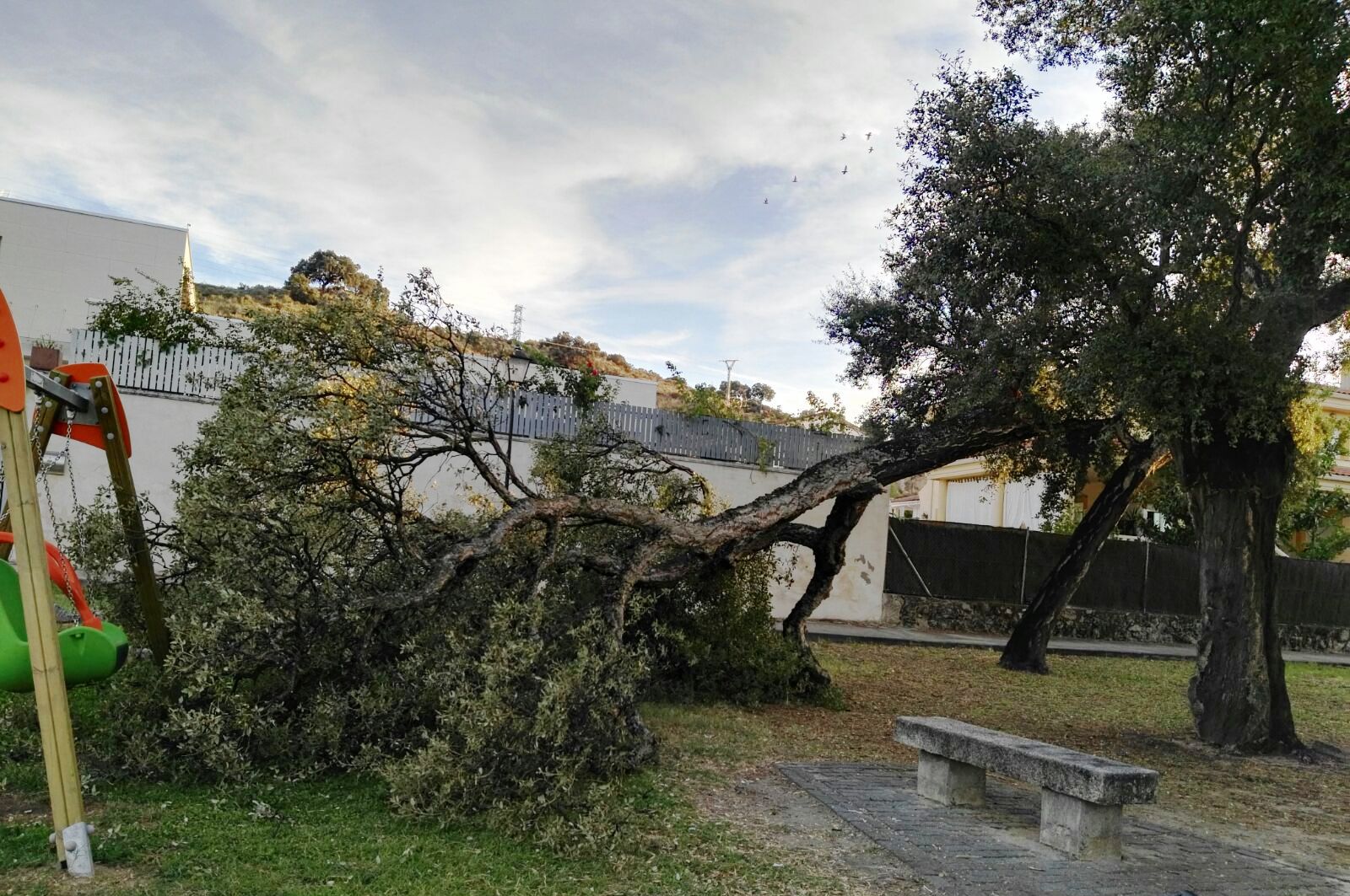Una familia se ha llevado un buen susto en la tarde del domingo cuando disfrutaba de la zona infantil del parque de La Bamba, al caer sobre el columpio una rama de considerable tamaño de un árbol próximo. Aunque más que una rama se puede decir que era casi una cuarta parte del árbol, un alcornoque que estaba podrido. De hecho su hija jugaba en ese columpio, de donde la sacaron rápidamente al escuchar el crujido. Minutos más tarde se presentaron agentes de la Policía Local.