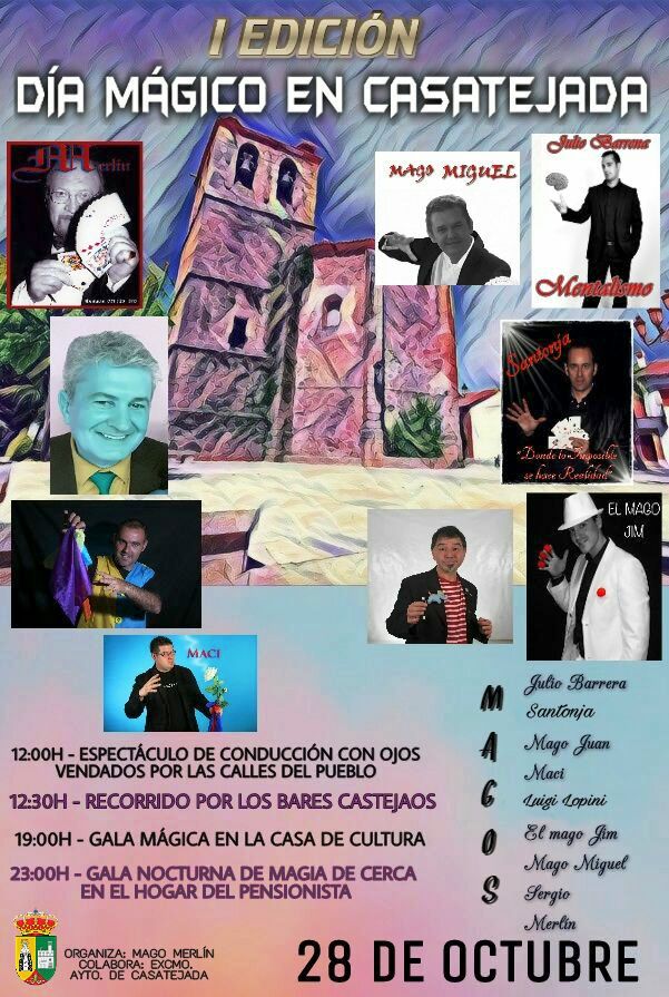 Casatejada vivirá el sábado su primer Día Mágico por iniciativa de Mago Merlín, con la colaboración del Ayuntamiento, y la presencia de una decena de artistas de la magia. Se trata de convertir a la magia en protagonista de la jornada con actividades para todos los públicos, tanto en espacios abiertos como cerrados.