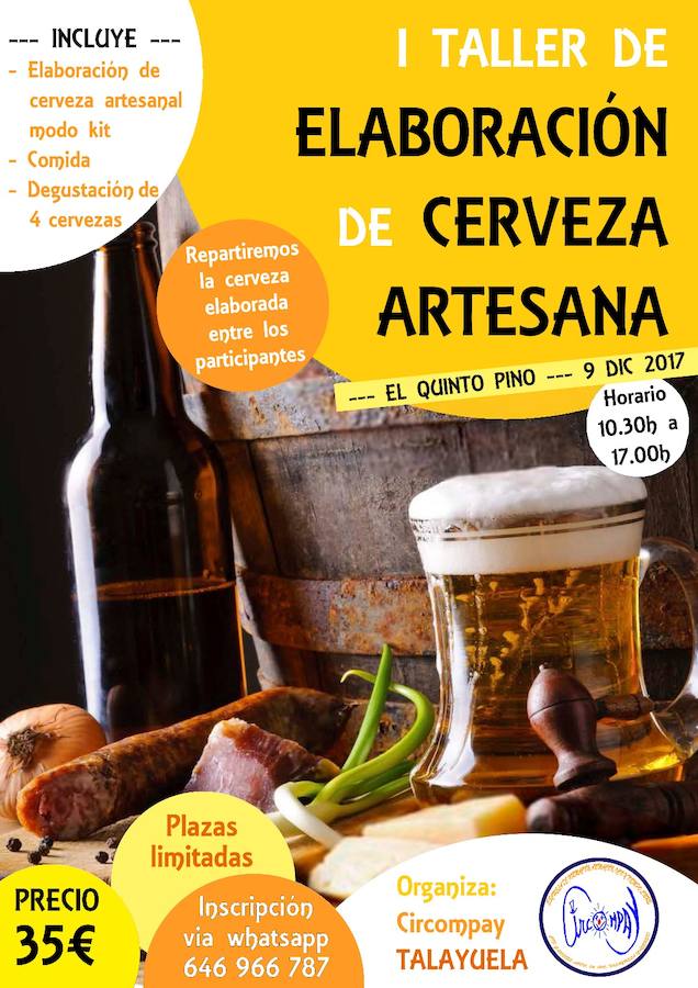 La Escuela de Animación Circompay quiere dar la posibilidad a toda persona aficionada o no a la cerveza a disfrutar y conocer el mundo de ... esta bebida milenaria. Para ello organizará un taller de elaboración de cerveza de un solo día en el Quinto Pino, en Talayuela, donde toda persona interesada conocerá la teoría para iniciarse en la elaboración de cerveza artesana siguiendo el proceso de producción paso a paso.
