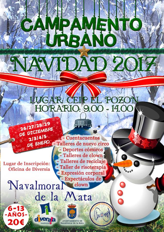 El Ayuntamiento anuncia que ya está abierto el plazo para inscribirse al Campamento Urbano de Navidad que se desarrollará entre el 26 y el 29 ... de diciembre y desde el 2 al 5 de enero en el colegio El Pozón, dirigido a niños y niñas de edades comprendidas entre los 6 y los 13 años.
